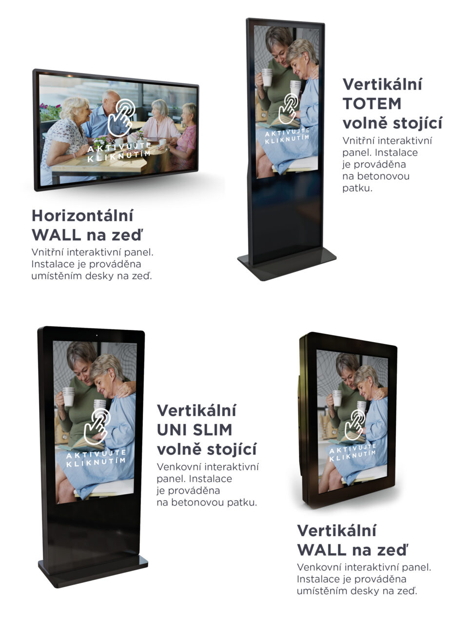 Právě proto jsme vyvinuli DigiDay SENIO – nový interaktivní panel určený speciálně pro domovy seniorů a zařízení sociální péče. Není to univerzální displej s přelepeným štítkem. SENIO vzniká ve spolupráci s vedením a personálem reálných zařízení, takže každý modul řeší konkrétní situaci z provozu. Na výběr je přes 25 modulů – od jídelníčku a kalendáře akcí přes orientaci v budově až po kvízy a trénink paměti. Vše na míru, bez reklam.