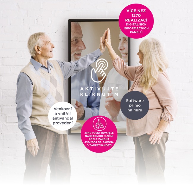 Pokud vaše organizace zaměstnává více než 25 lidí, můžete panel pořídit formou náhradního plnění – tedy bez přímého zásahu do provozního rozpočtu. DigiDay je poskytovatelem náhradního plnění dle zákona 435/2004 Sb. Rádi vám spočítáme, jestli na to máte nárok a kolik můžete ušetřit.
