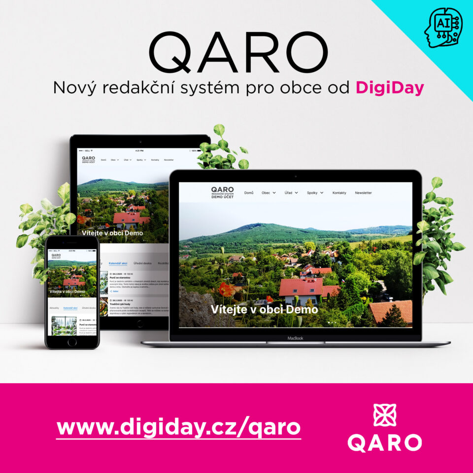 DigiDay na tyto výzvy odpovídá systémem QARO – moderním redakčním systémem navrženým speciálně pro obce a města. QARO je postaveno tak, aby splňovalo všechny legislativní povinnosti, bylo snadno ovladatelné i bez technických znalostí a nabídlo plně responzivní design. Obce navíc získávají širokou škálu modulů – od úřední desky přes rozpočty a kalendář akcí až po fotogalerie.